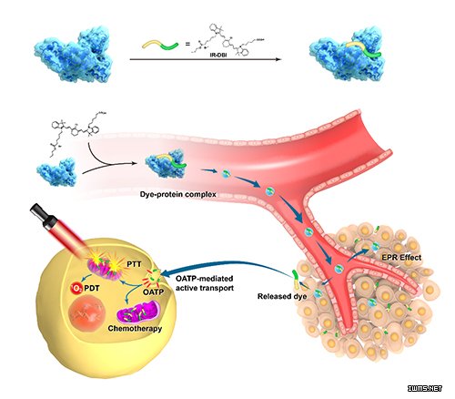 图. 多功能近红外小分子IR-DBI通过白蛋白介导的EPR效应被动运输和转运蛋白介导的主动运输双重靶向机制选择性蓄积在缺氧细胞线粒体